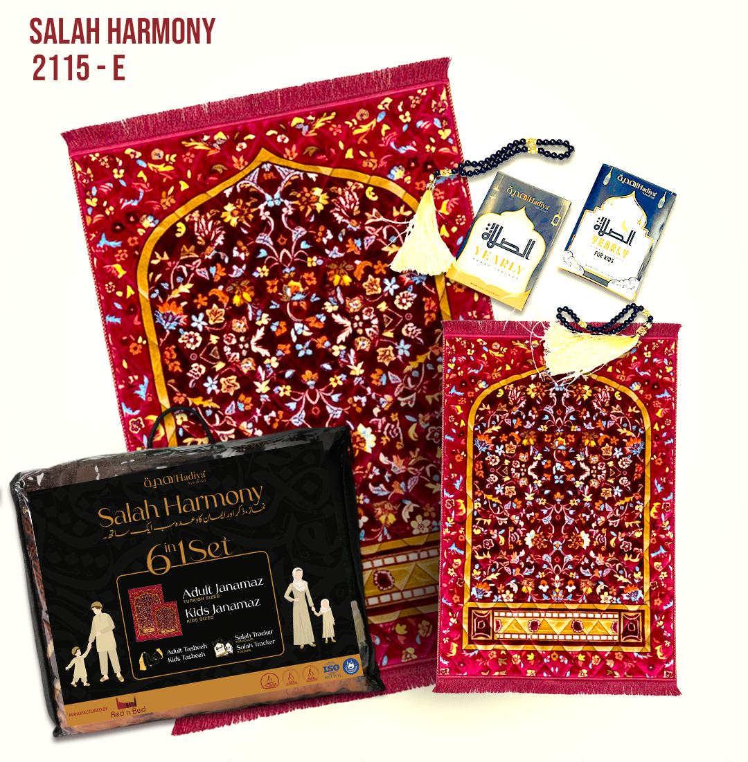 Discover Hadiya’s exclusive Salah’s first-ever complete prayer gift set, designed to bring families together in worship. Beautifully packed in a premium packaging, this set is a perfect blend of spirituality, elegance, and togetherness — created with love in Karachi by RednBed, the trusted name in luxury prayer mats.