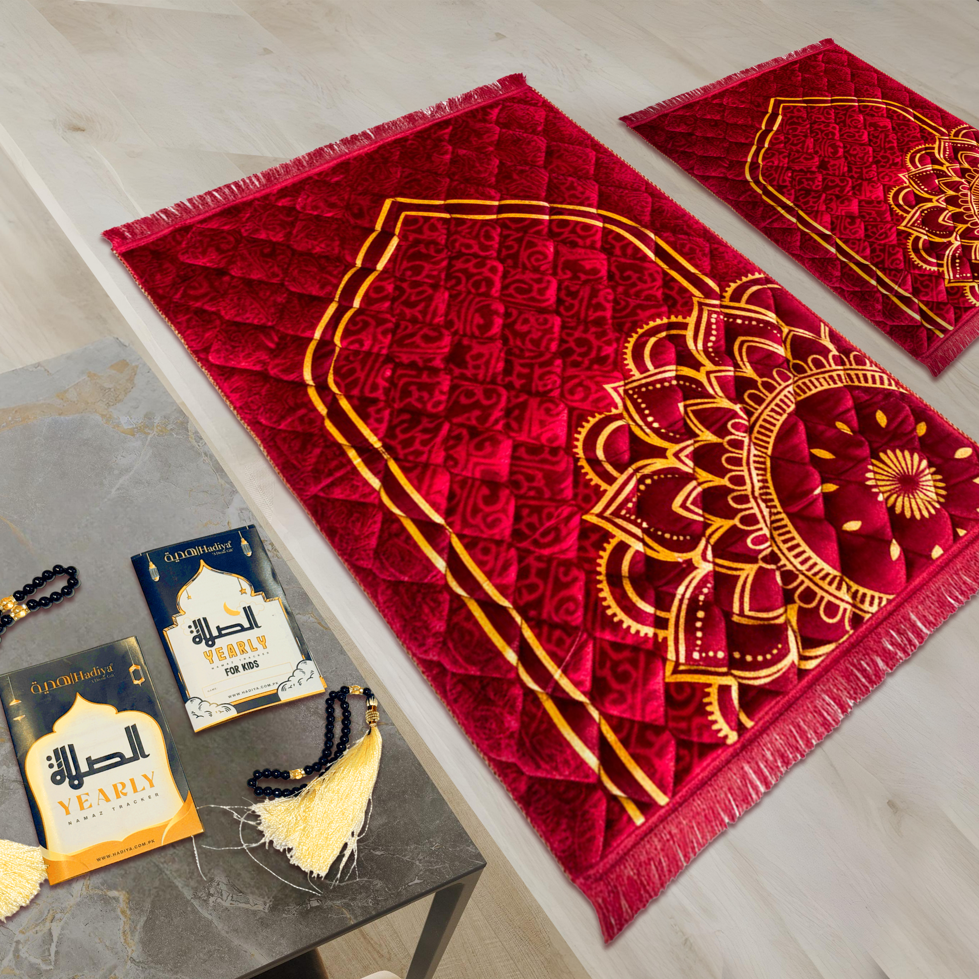 Discover Hadiya’s exclusive Salah’s first-ever complete prayer gift set, designed to bring families together in worship. Beautifully packed in a premium packaging, this set is a perfect blend of spirituality, elegance, and togetherness — created with love in Karachi by RednBed, the trusted name in luxury prayer mats.