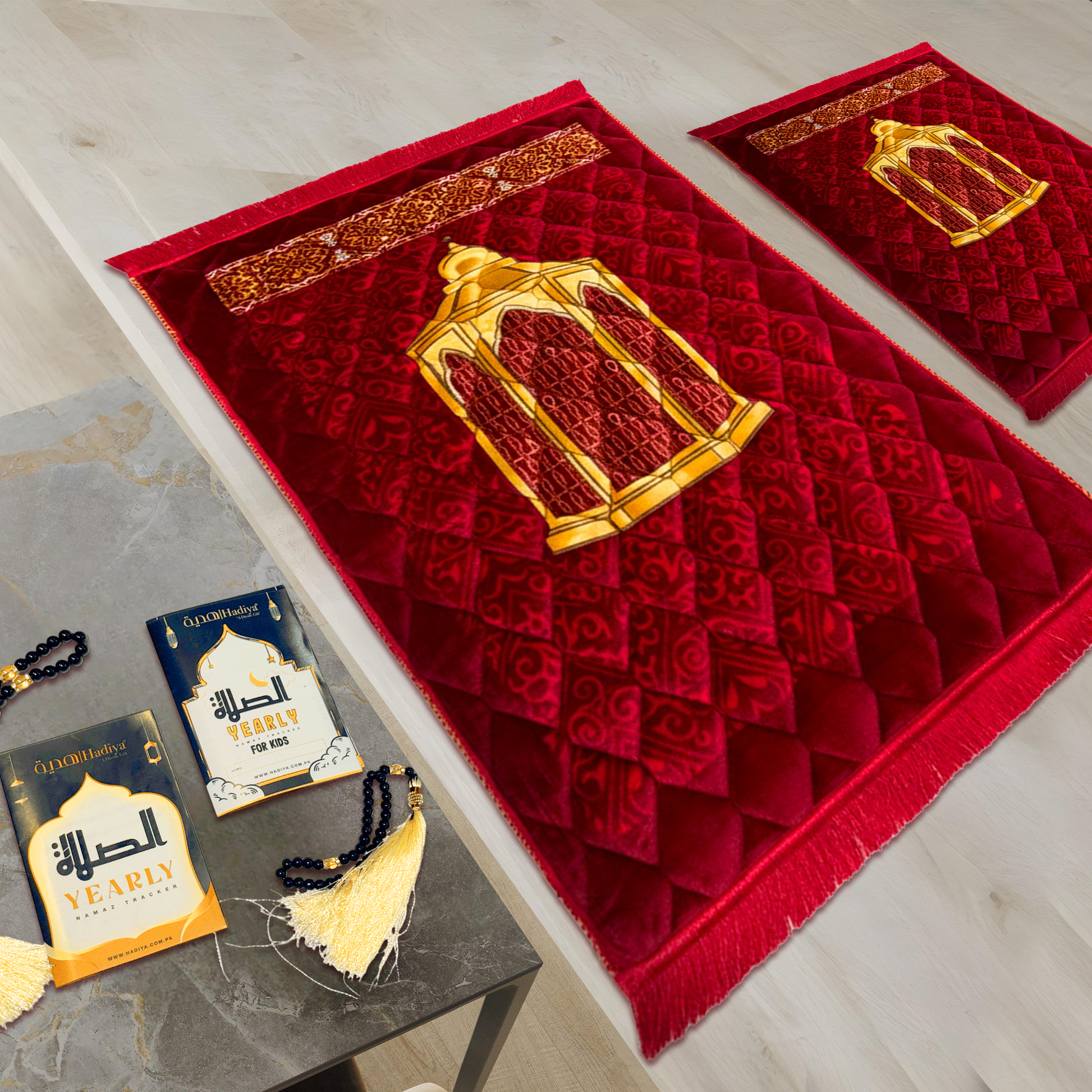 Discover Hadiya’s exclusive Salah’s first-ever complete prayer gift set, designed to bring families together in worship. Beautifully packed in a premium packaging, this set is a perfect blend of spirituality, elegance, and togetherness — created with love in Karachi by RednBed, the trusted name in luxury prayer mats.