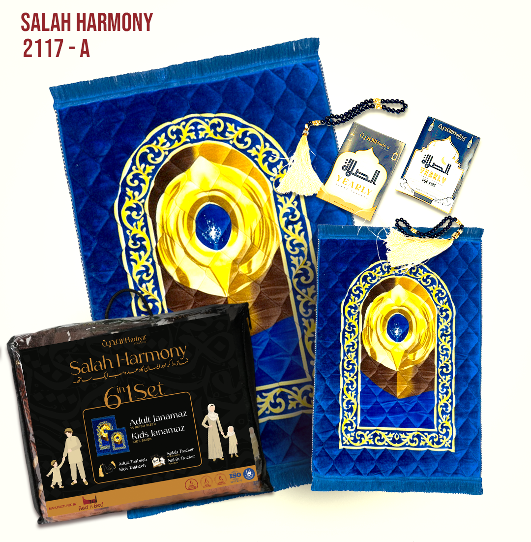 Discover Hadiya’s exclusive Salah’s first-ever complete prayer gift set, designed to bring families together in worship. Beautifully packed in a premium packaging, this set is a perfect blend of spirituality, elegance, and togetherness — created with love in Karachi by RednBed, the trusted name in luxury prayer mats.