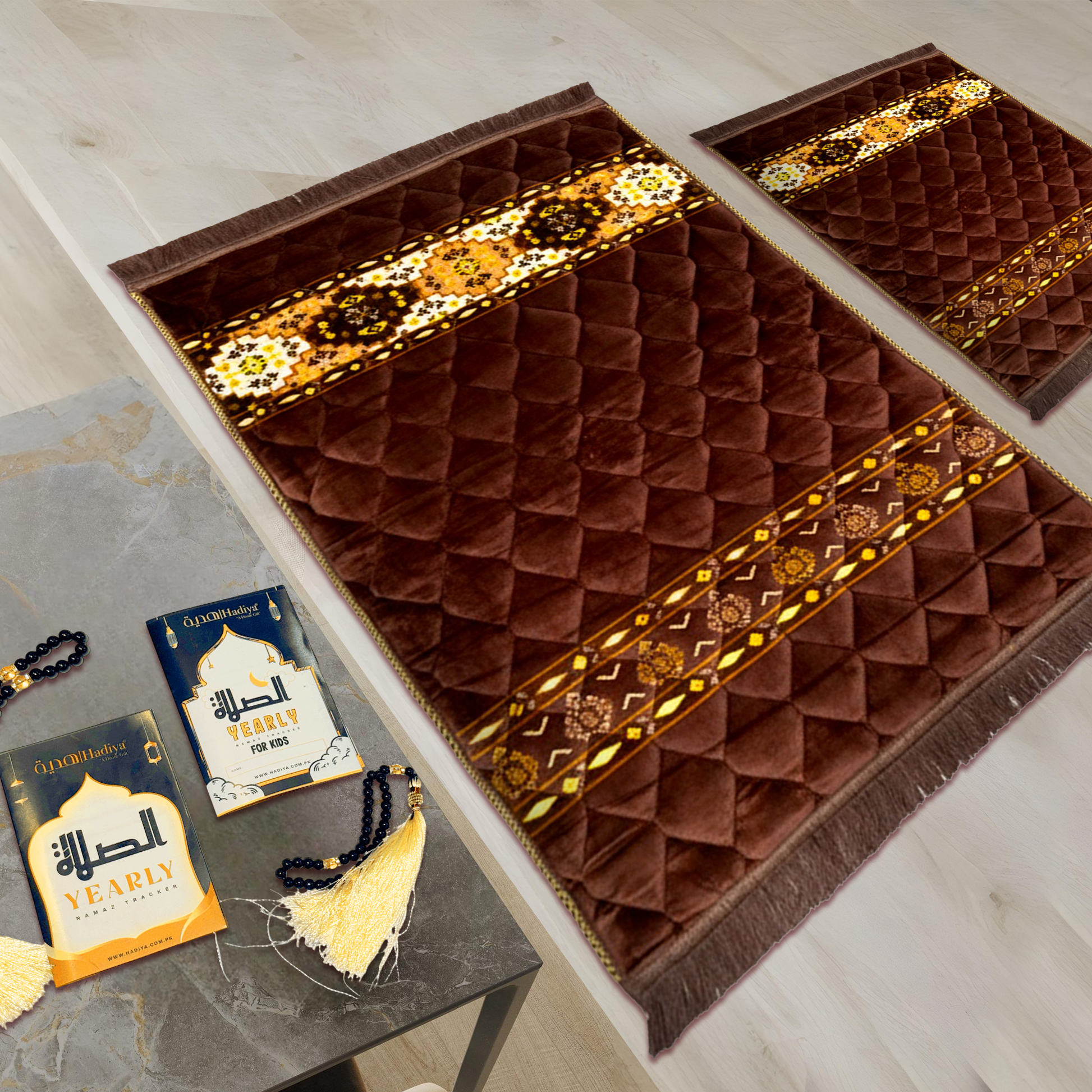 Discover Hadiya’s exclusive Salah’s first-ever complete prayer gift set, designed to bring families together in worship. Beautifully packed in a premium packaging, this set is a perfect blend of spirituality, elegance, and togetherness — created with love in Karachi by RednBed, the trusted name in luxury prayer mats.
